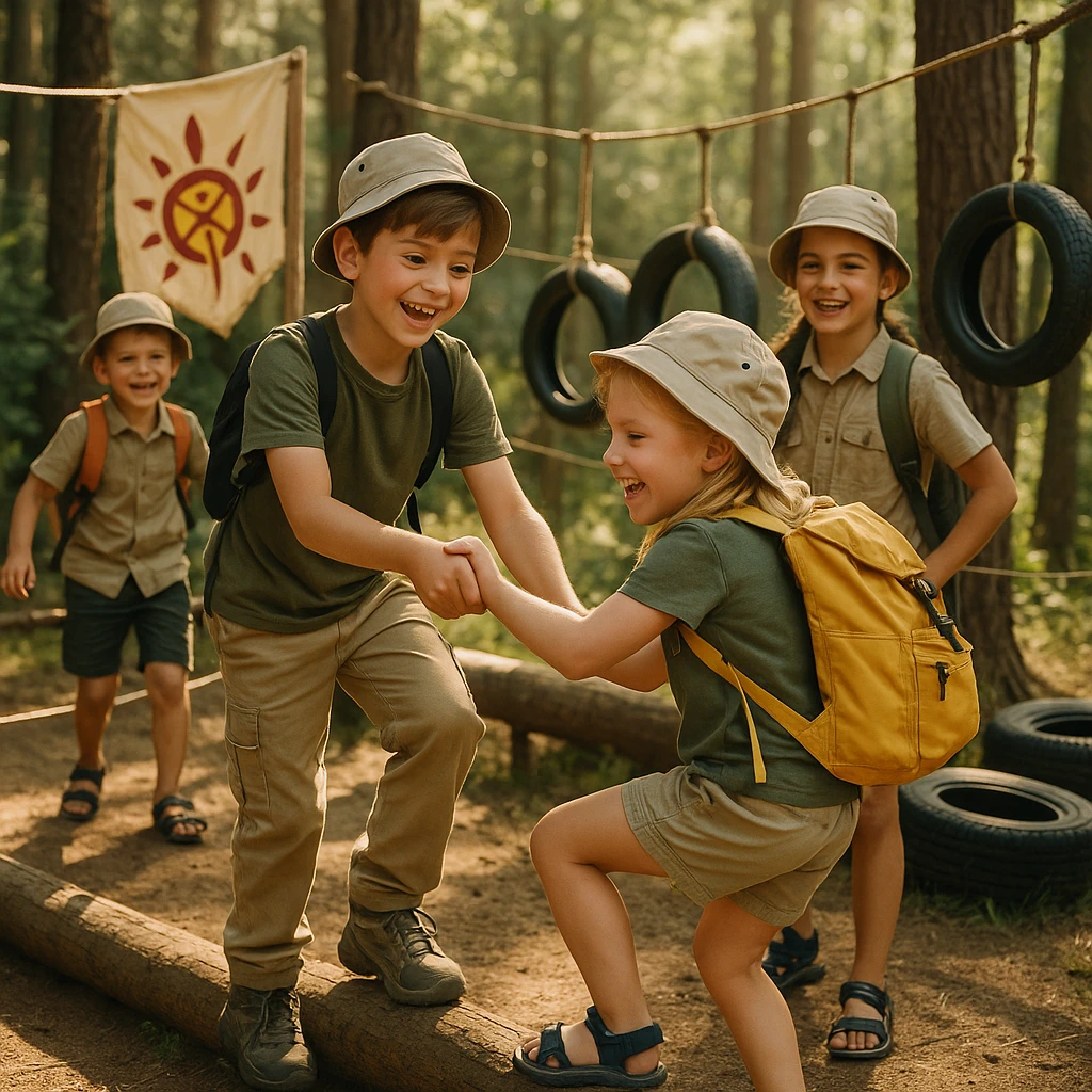 Copiii vor participa la jocuri de echilibru, coordonare și încredere. Vor învăța despre orientarea în natură, semnele vremii și cum să își organizeze resursele. Activitățile includ mini-campuri de antrenament cu obstacole și probe fizice adaptate vârstei, încurajând cooperarea, nu competiția.